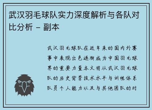 武汉羽毛球队实力深度解析与各队对比分析 - 副本